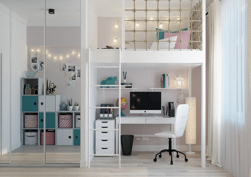 - Loft beds or Murphy beds free up floor space for a desk, sofa, or storage underneath.