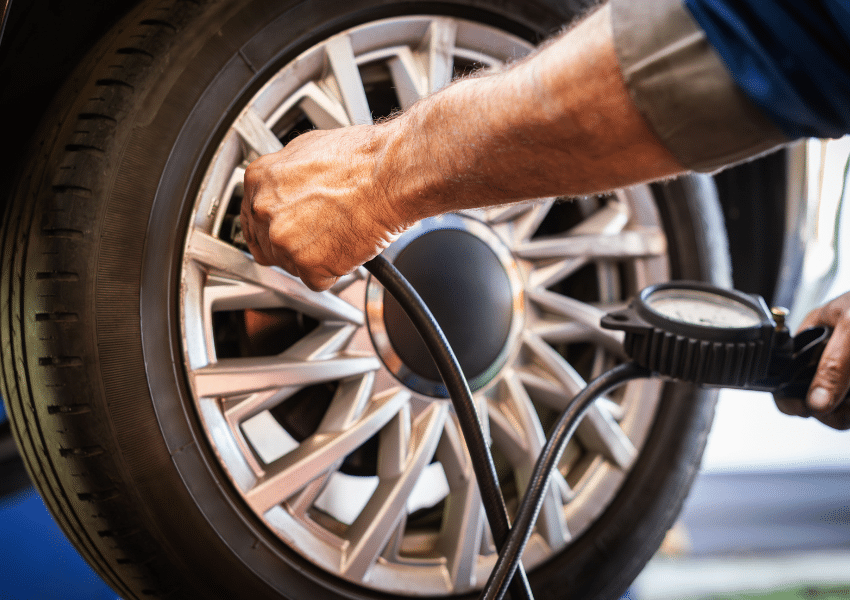 Check tire pressure regularly using a gauge, ideally when tires are cold — meaning they haven’t been driven for at least three hours. The correct pressure can be found in your owner’s manual or on the sticker inside the driver’s side door.